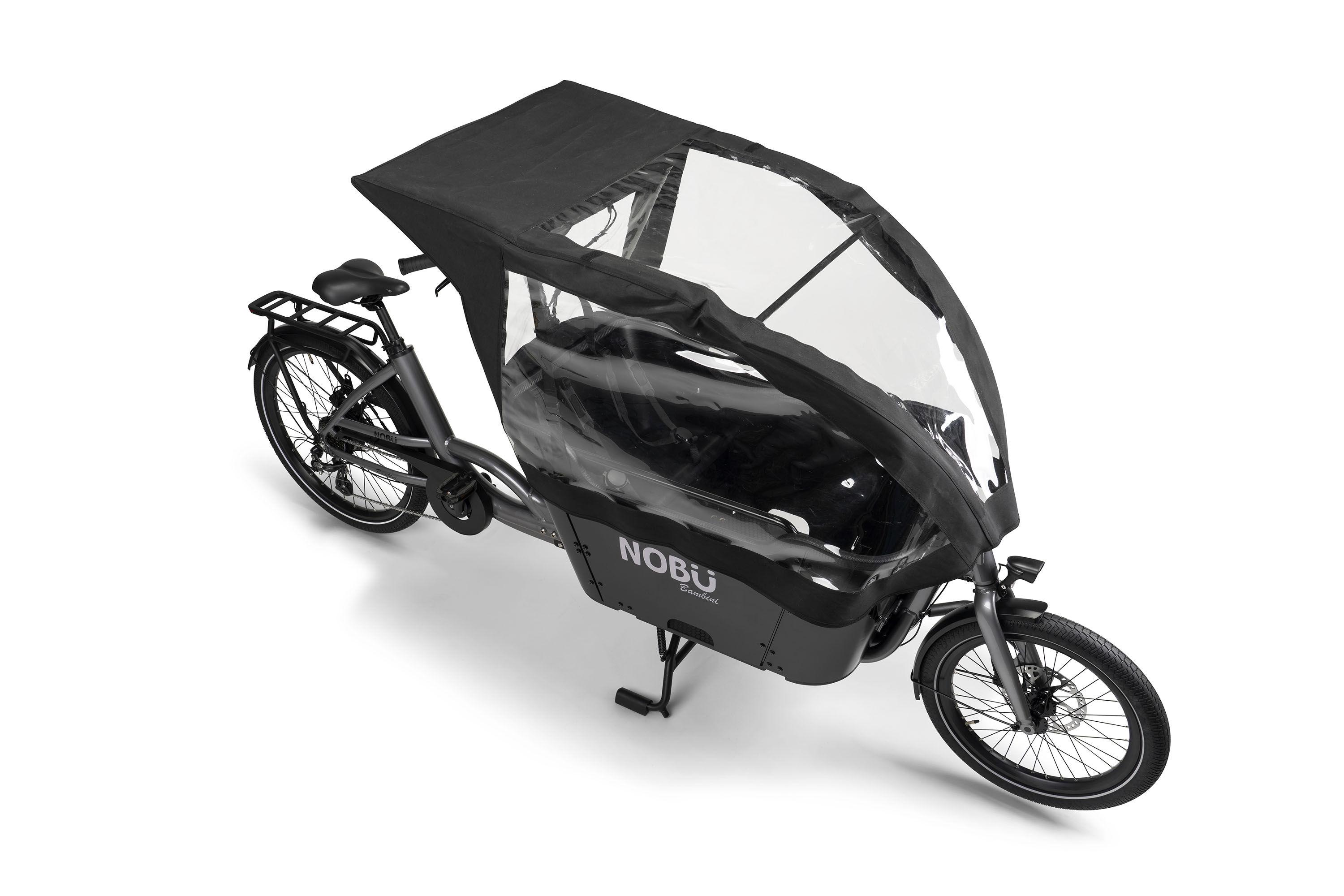 Til beskyttelse mod vind og vejr kan Bambini udstyres med en regnhætte. Regnhætten kan åbnes i begge sider, hvilket giver ekstra ventilation på varme dage. Samtidig falder regnhætten hen over styret, så førerens hænder også holdes tørre og i læ for vinden.